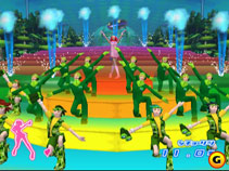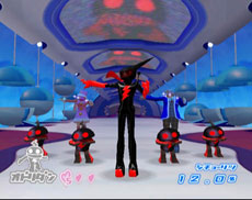 As the groovy, 22-year old space reporter Ulala, its your job to save the galaxy and increase the viewer rating of your show by out-dancing your opponents. Its basically an elaborate version of "Simon Says" in which the opponent lays down a dance move, and you have to copy it. It all moves in time to the music's funky dance beats, which are the perfect accompaniment to the retro-futuristic visual style of the game. If you do well with the dancing, you'll rescue humans who will follow behind you, eventually creating a train of choreographed dancers. Do poorly and the music will turn ugly, your dancers will hang their heads, and your ratings will drop. It is a hilarious concept that is pulled off beautifully. |