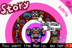 This game takes great advantage of the Gyro Sensor. In fact, just about every micro game you play leaves you thinking, "Oh what an awesome idea!" They have you turning and tilting the GBA to do a variety of things. Here's just a few: steering a car, dunking a basketball, running up a spiral staircase, moving a windshield wiper, swinging a baseball bat, doing a spin kick, shaking up a soda bottle, doing situps, the list goes on, and that list is really really awesome ideas. The rumble feature is also really well done, allowing you to really feel the clicks and twists of every microgame. Every character's stage has a certain collection to them. For instance, Mona's games are for some easy games where you just tilt the GBA a little bit in one direction or the other, Jimmy's requires that you turn your GBA quite a bit, sometimes including all the way around, 360 degrees. Kat and Ana are strictly only pressing the A button, and Dribble and Spitz are for tilting and pressing the A button at the same time. Eventually you'll open up stages that throw all of these together. It's not necessarily whether you beat a stage or not, that's easy. Clearing any character's story only asks that beat about 13 microgames, but once you beat their stage, you can go back and do some more damage. Allowing you to go up to 30, 50, or even 70 as a high score. That's where this game succeeds, in replay value. The game only lasts a couple hours to beat, but if you think that's it, then you're a moron. |
